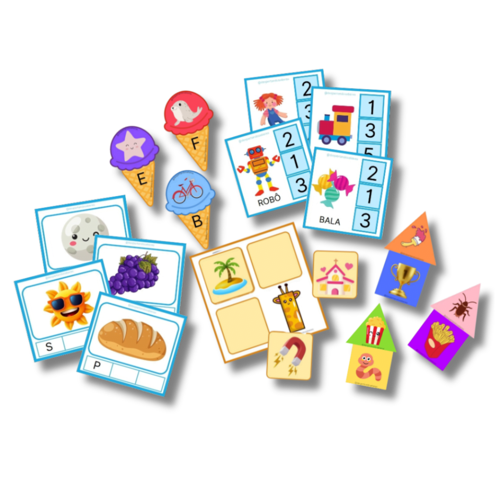 Atividades lúdicas e envolventes para você imprimir e ajudar a sua criança a acelerar na alfabetização de uma forma leve e divertida.
